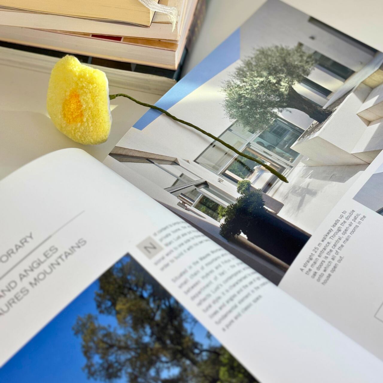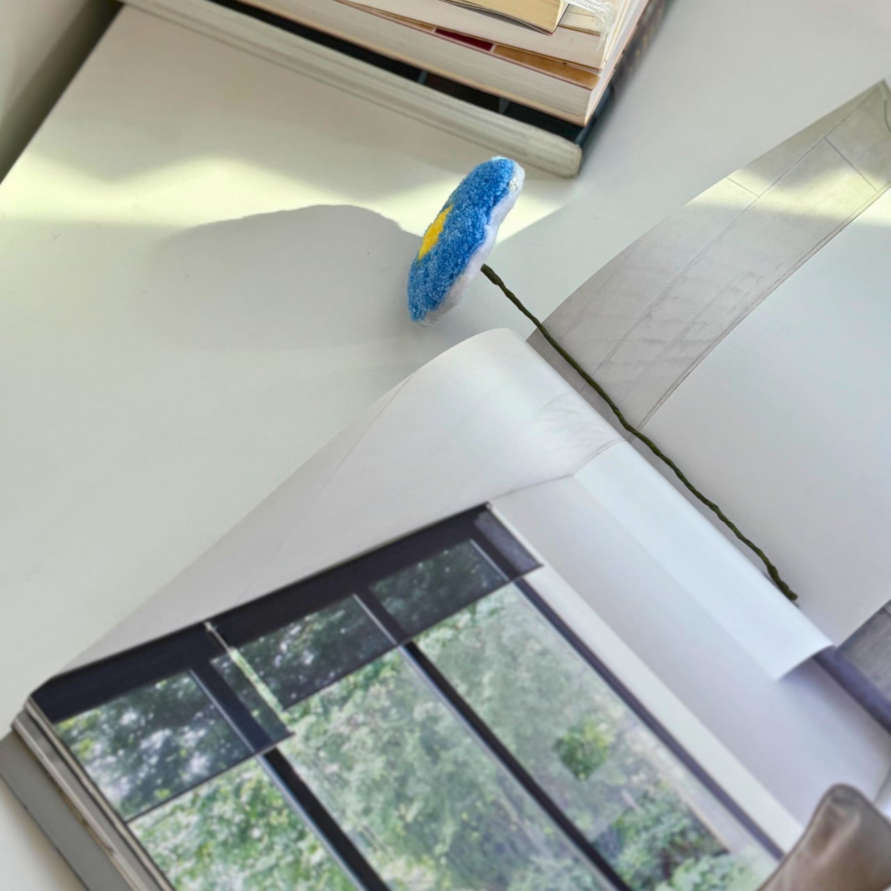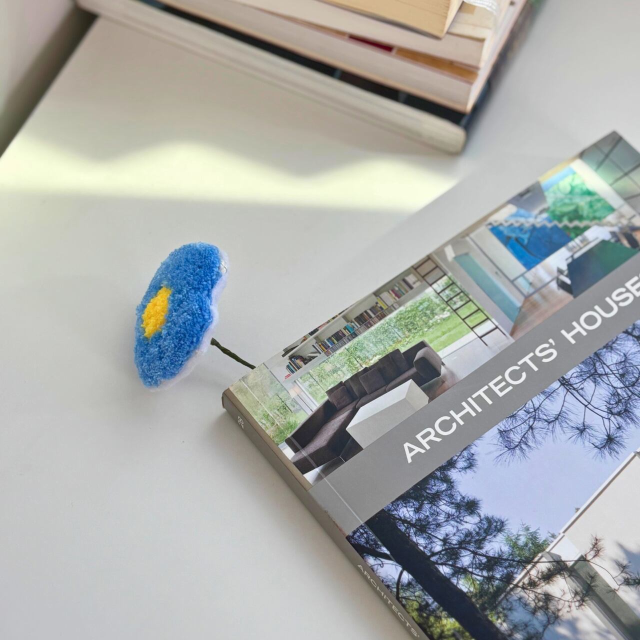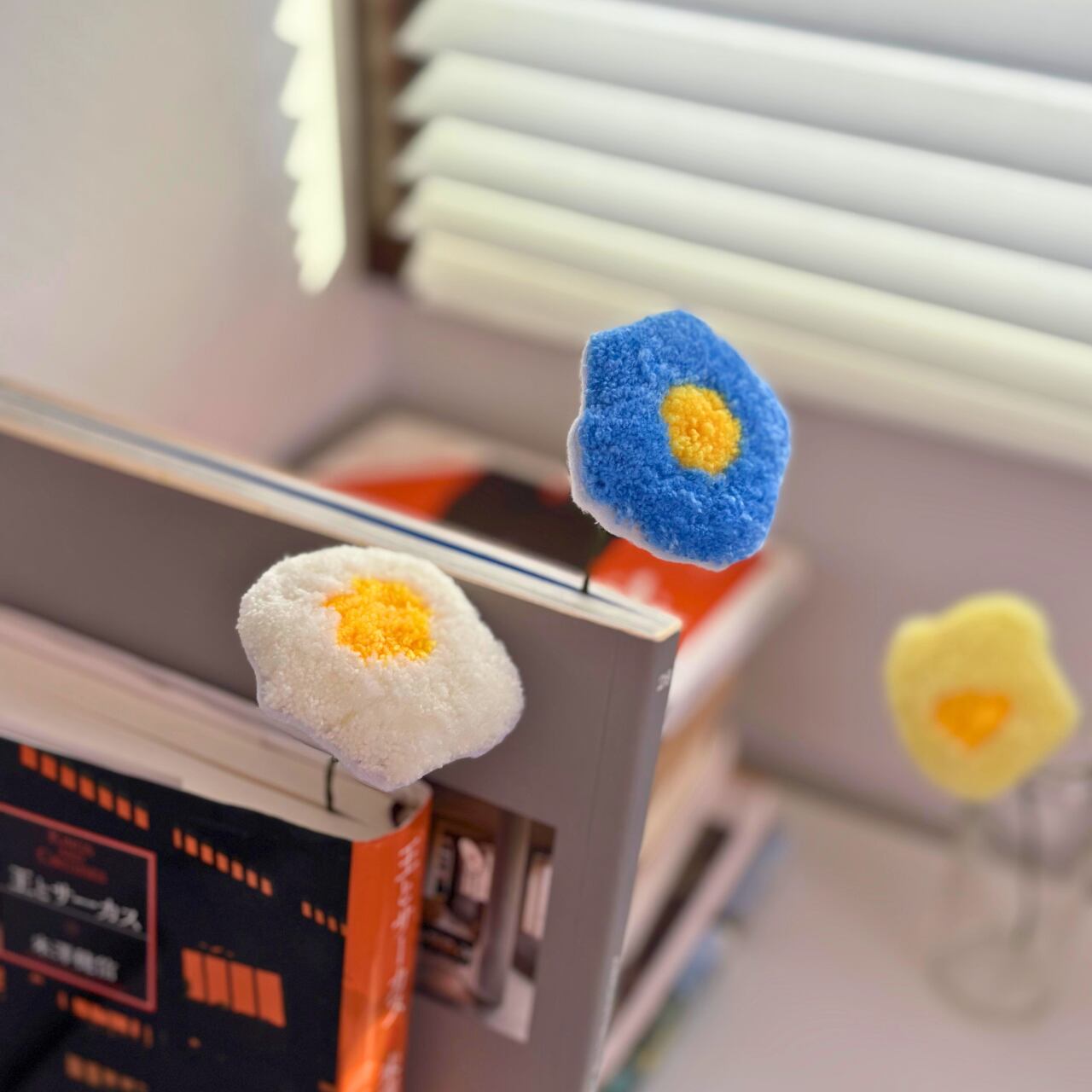 タフティングで仕立てたフワフワのお花のブックマーク。